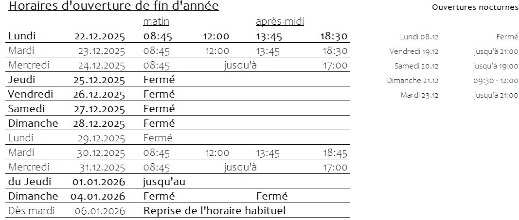 Attention : Vendredi 12 décembre fermeture exceptionnelle à 17:00